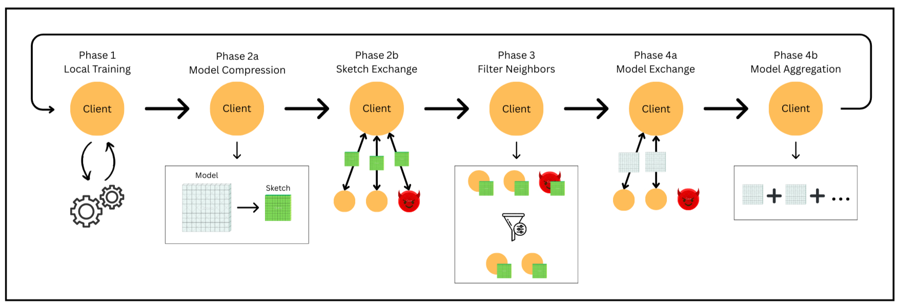 Decentralized Federated Learning (DFL) enables privacy-preserving collaborative training without centralized servers, but remains vulnerable to Byzantine attacks where malicious clients submit corrupted model updates. Existing Byzantine-robust DFL defenses rely on similarity-based neighbor screening that requires every client to exchange and compare complete high-dimensional model vectors with all neighbors in each training round, creating prohibitive communication and computational costs that prevent deployment at web scale. We propose SketchGuard, a general framework that decouples Byzantine filtering from model aggregation through sketch-based neighbor screening. SketchGuard compresses $d$-dimensional models to $k$-dimensional sketches ($k \ll d$) using Count Sketch for similarity comparisons, then selectively fetches full models only from accepted neighbors, reducing per-round communication complexity from $O(d|\mathcal{N}_i|)$ to $O(k|\mathcal{N}_i| + d|\mathcal{S}_i|)$, where $|\mathcal{N}_i|$ is the neighbor count and $|\mathcal{S}_i| \le |\mathcal{N}_i|$ is the accepted neighbor count. We establish rigorous convergence guarantees in both strongly convex and non-convex settings, proving that Count Sketch compression preserves Byzantine resilience with controlled degradation bounds where approximation errors introduce only a $(1+O(\epsilon))$ factor in the effective threshold parameter. Comprehensive experiments across multiple datasets, network topologies, and attack scenarios demonstrate that SketchGuard maintains identical robustness to state-of-the-art methods, with mean test error rate deviation of only up to 0.35 percentage points, while reducing computation time by up to 82% and communication overhead by 50-70% depending on filtering effectiveness, with benefits scaling multiplicatively with model dimensionality and network connectivity. These results establish the viability of sketch-based compression as a fundamental enabler of robust DFL at web scale.